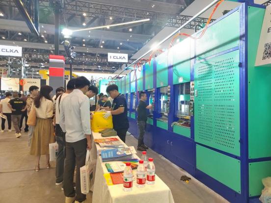 全自動(dòng)雙色PVC注塑成型機(jī)、4槍EVA射出機(jī)、全自動(dòng)冷熱壓成型機(jī)……這次展會(huì),晉江市凱嘉機(jī)器制造有限公司攜帶15款不同類型鞋機(jī)集中亮相,高速運(yùn)轉(zhuǎn)的機(jī)械設(shè)備生產(chǎn)著顏色各異的拖鞋,產(chǎn)量大、效率高的特點(diǎn)吸引了全球客商駐足了解洽談,凱嘉展位也成為人氣最旺的展位之一。